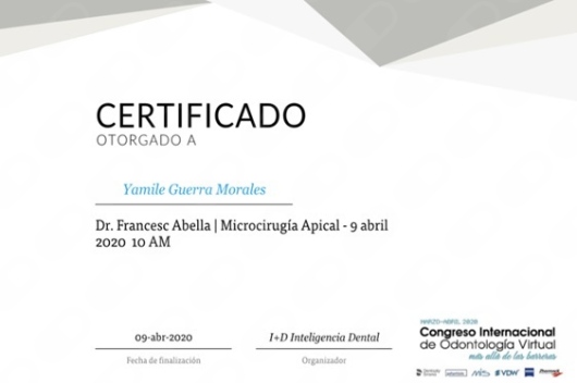 * Certificado en Micro endodoncia* (uso de microscopio dental para tratamientos más precisos).